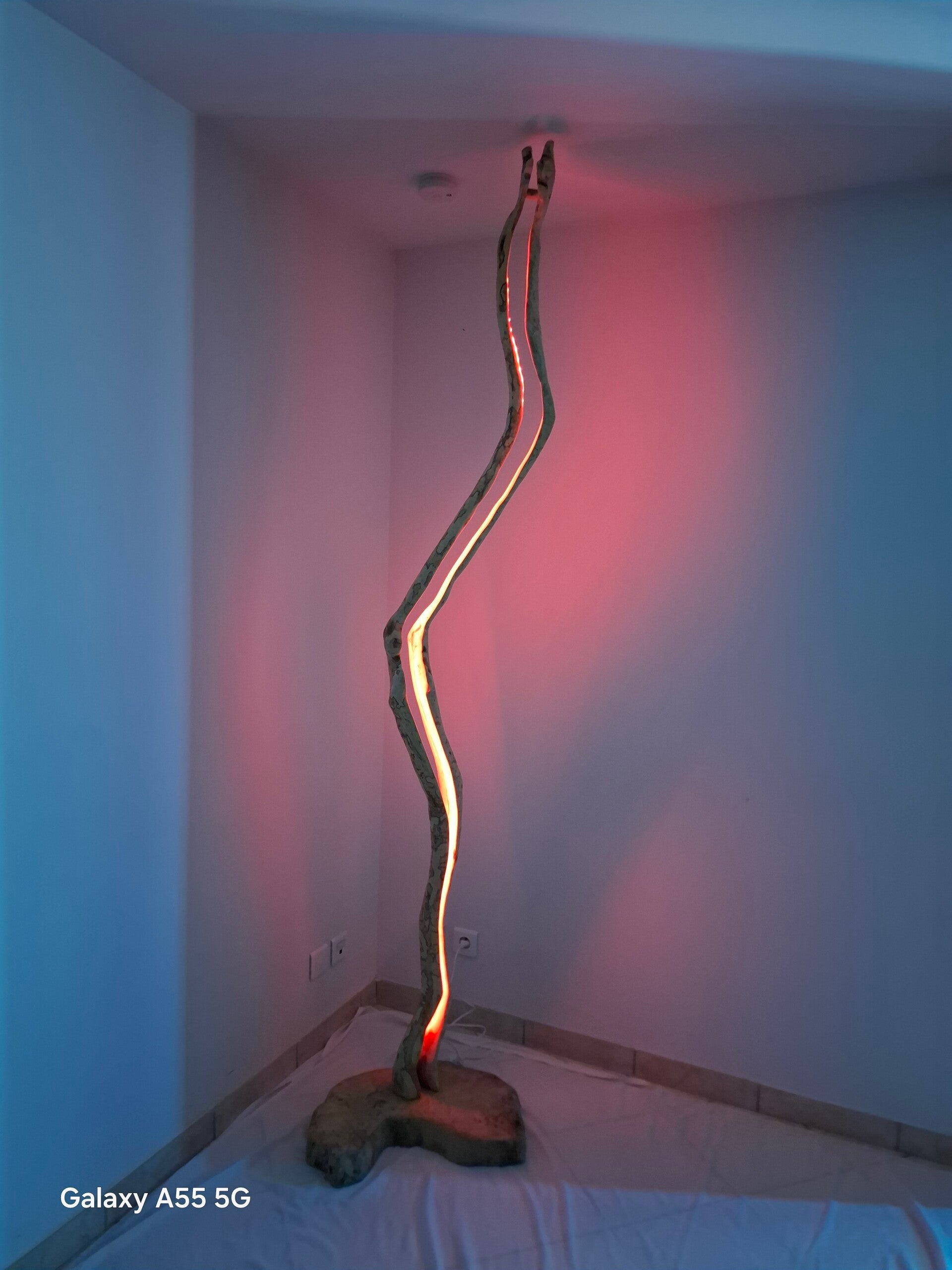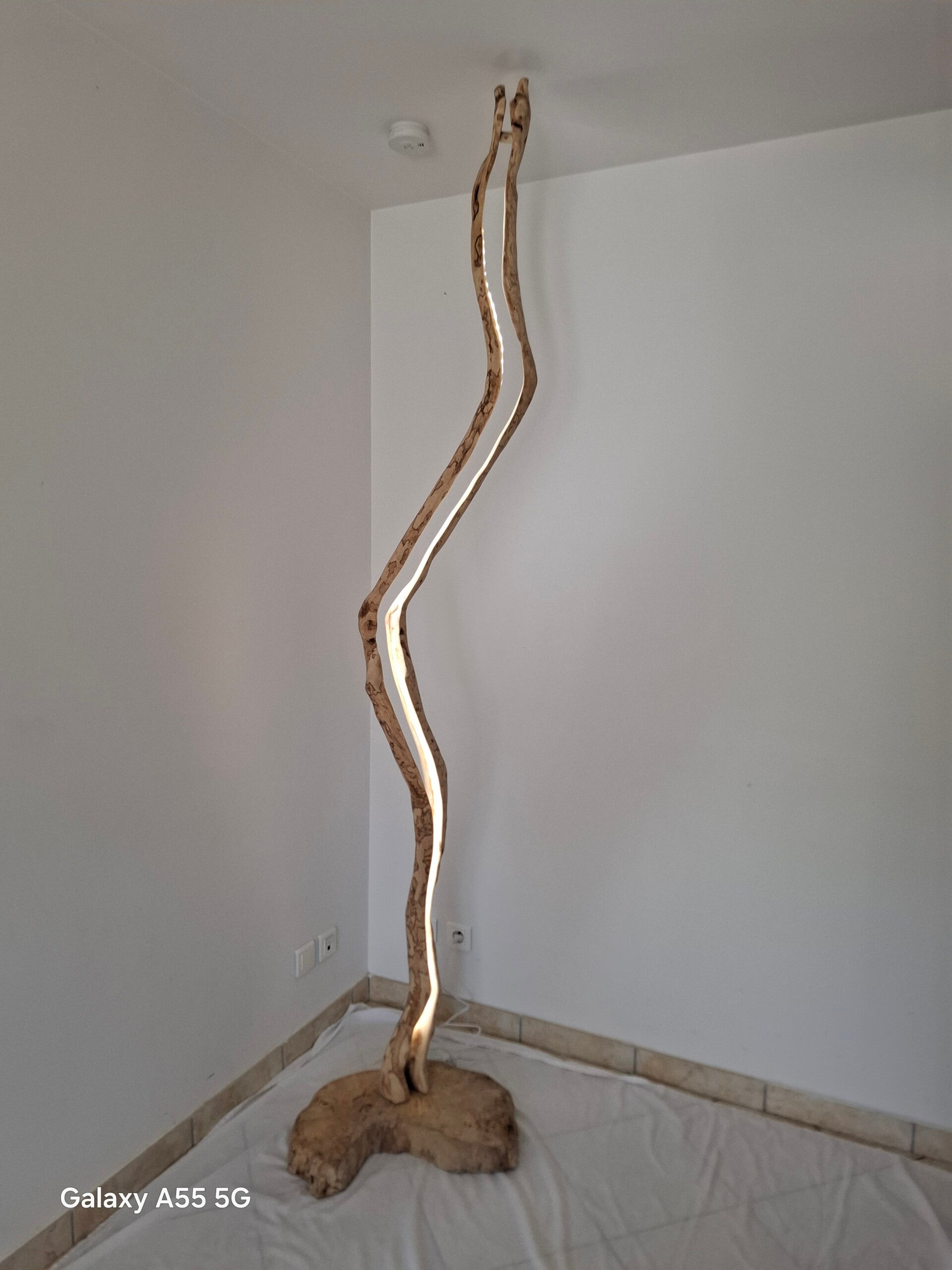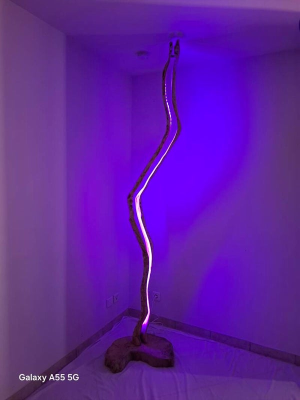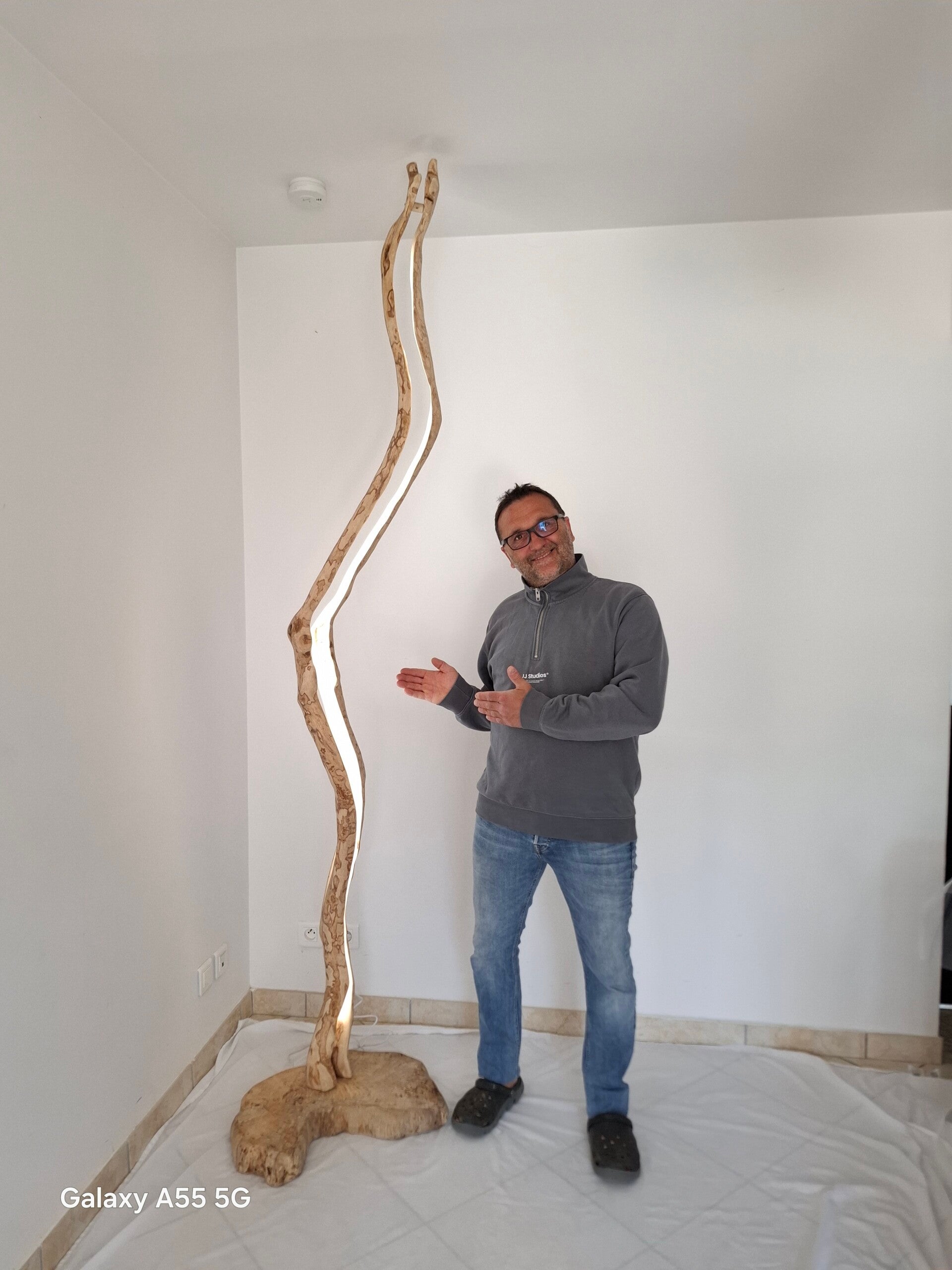 Le socle est en chêne et le tron en bois d'olivier.